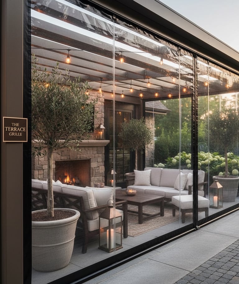 Our clear vinyl screens let you enjoy your outdoor space in any season. Built to block wind, rain, and cold while preserving your view, these premium enclosures create a comfortable, climate-controlled environment for patios, restaurants, and outdoor living areas. Durable, crystal-clear, and easy to operate, they deliver year-round protection without sacrificing style or visibility.